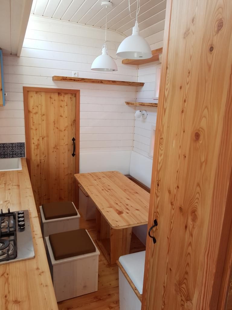 Der Wagen dient als Ferienhaus in Österreich u.a. auch zum Skifahren.